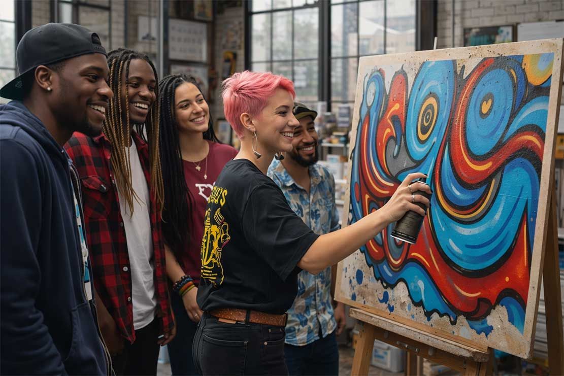 Led by professional graffiti artists, each session blends hands-on creativity with expert guidance. You’ll learn real spray techniques, layering, colour control, and stencil work, all while working at your own pace in a laid-back, grown-up environment. No pressure, no performance, just proper street art done right.